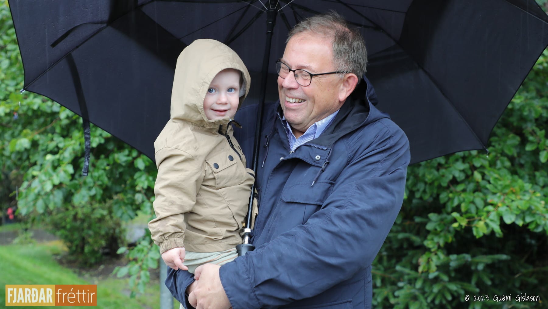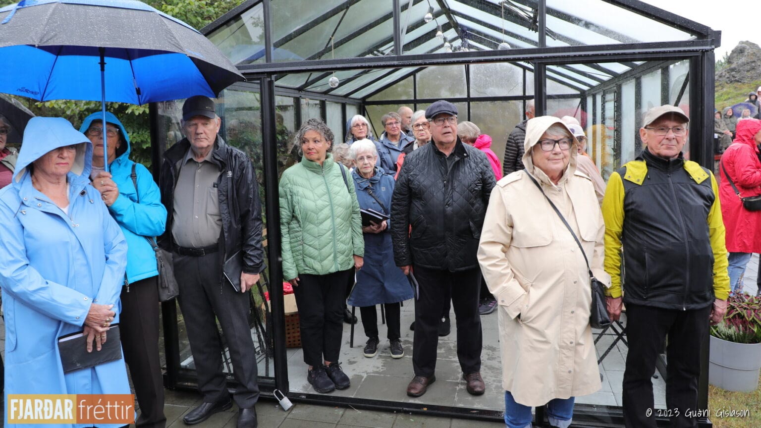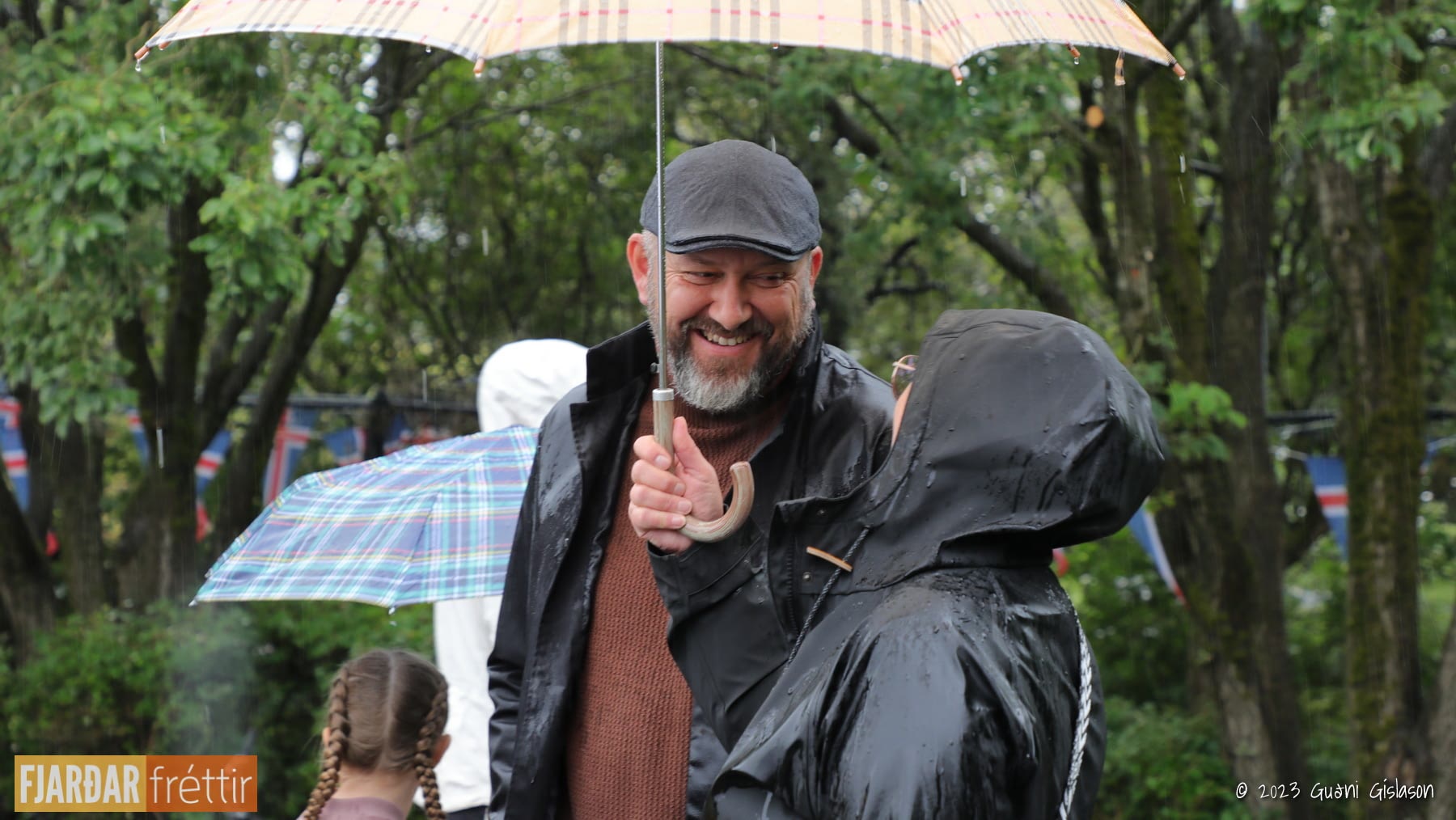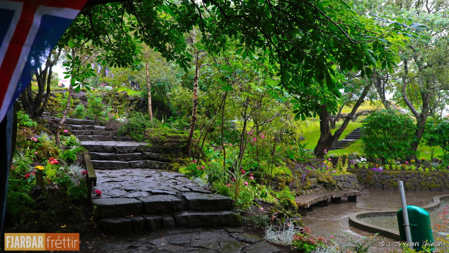 Sl. laugardag var blásið til afmælishátíðar í tilefni af 100 ára afmæli Hellisgerðis og þangað mættu áræðnir og vel klæddir bæjarbúar sem voru viðbúnir rigningu.