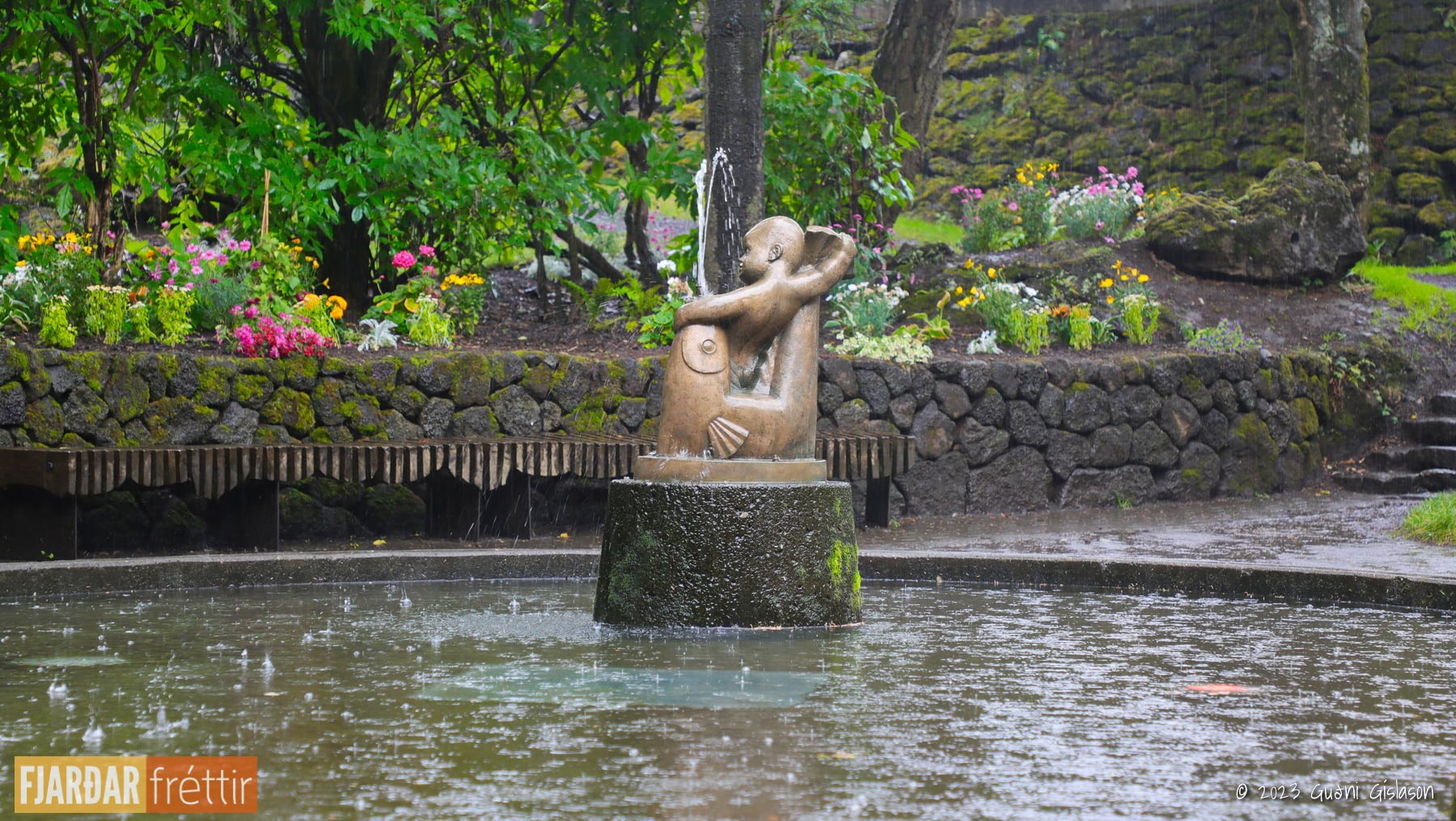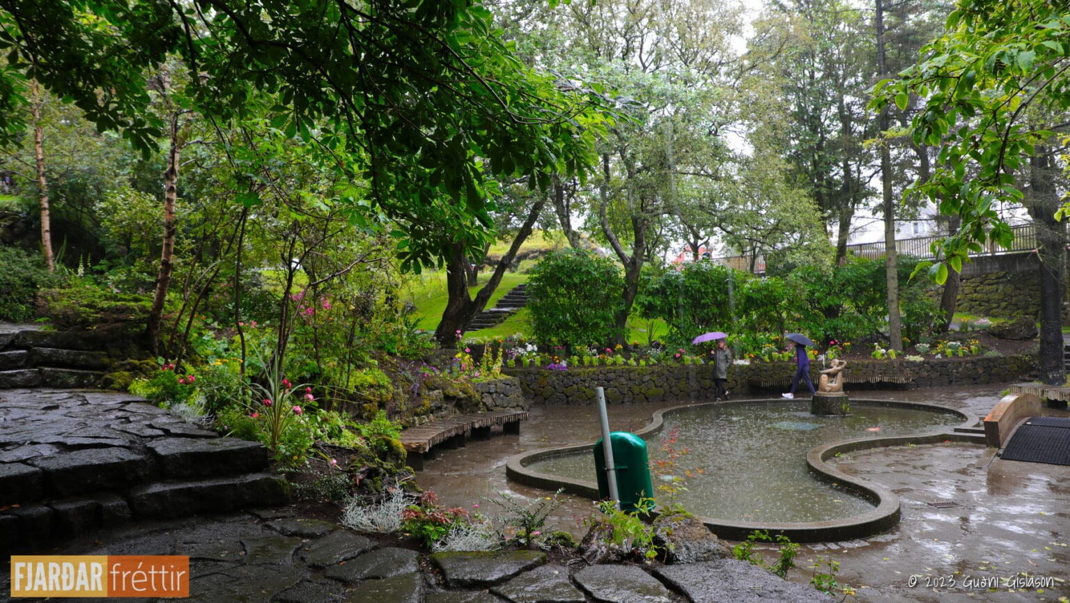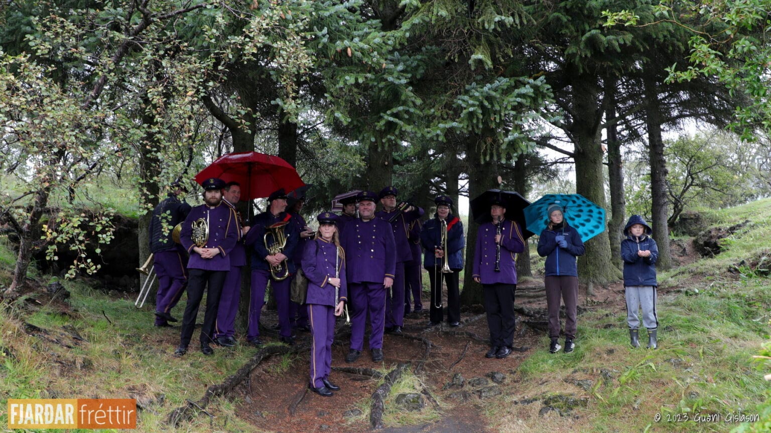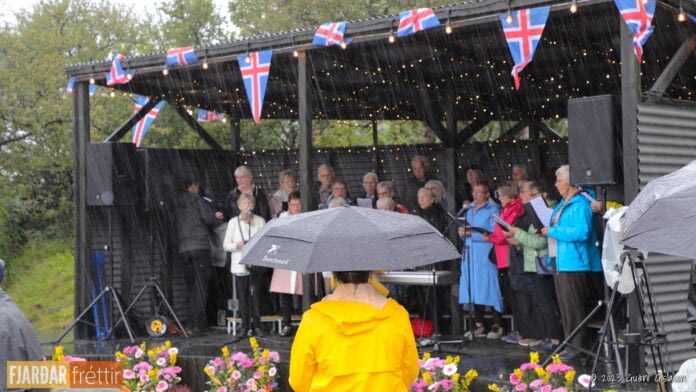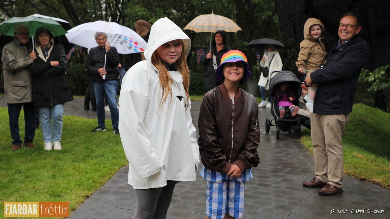 Sl. laugardag var blásið til afmælishátíðar í tilefni af 100 ára afmæli Hellisgerðis og þangað mættu áræðnir og vel klæddir bæjarbúar sem voru viðbúnir rigningu.