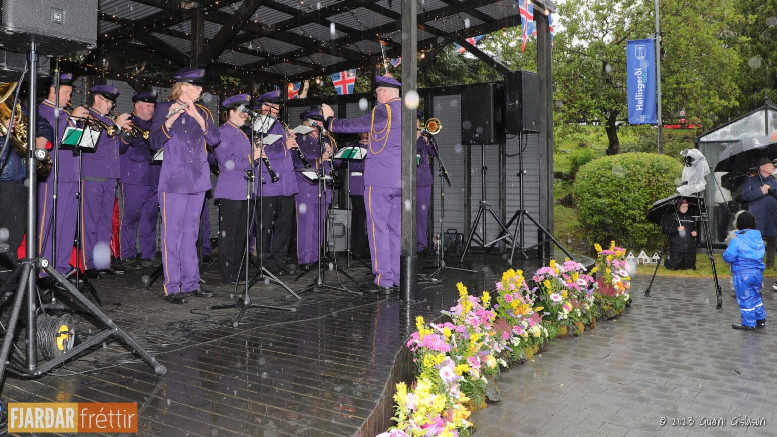 Gaflarakórinn söng fyrir viðstadda og Lúðrasveit Hafnarfjarðar lék fagurlega. Djasshljómsveitin SE Sextett lék svo fyrir gesti með tónum frá 1930.