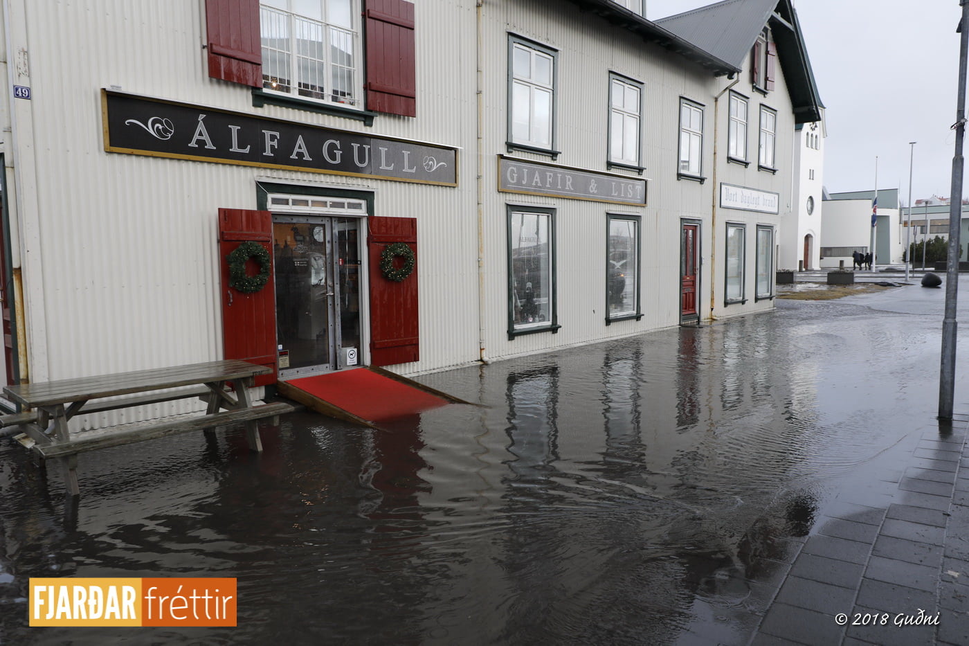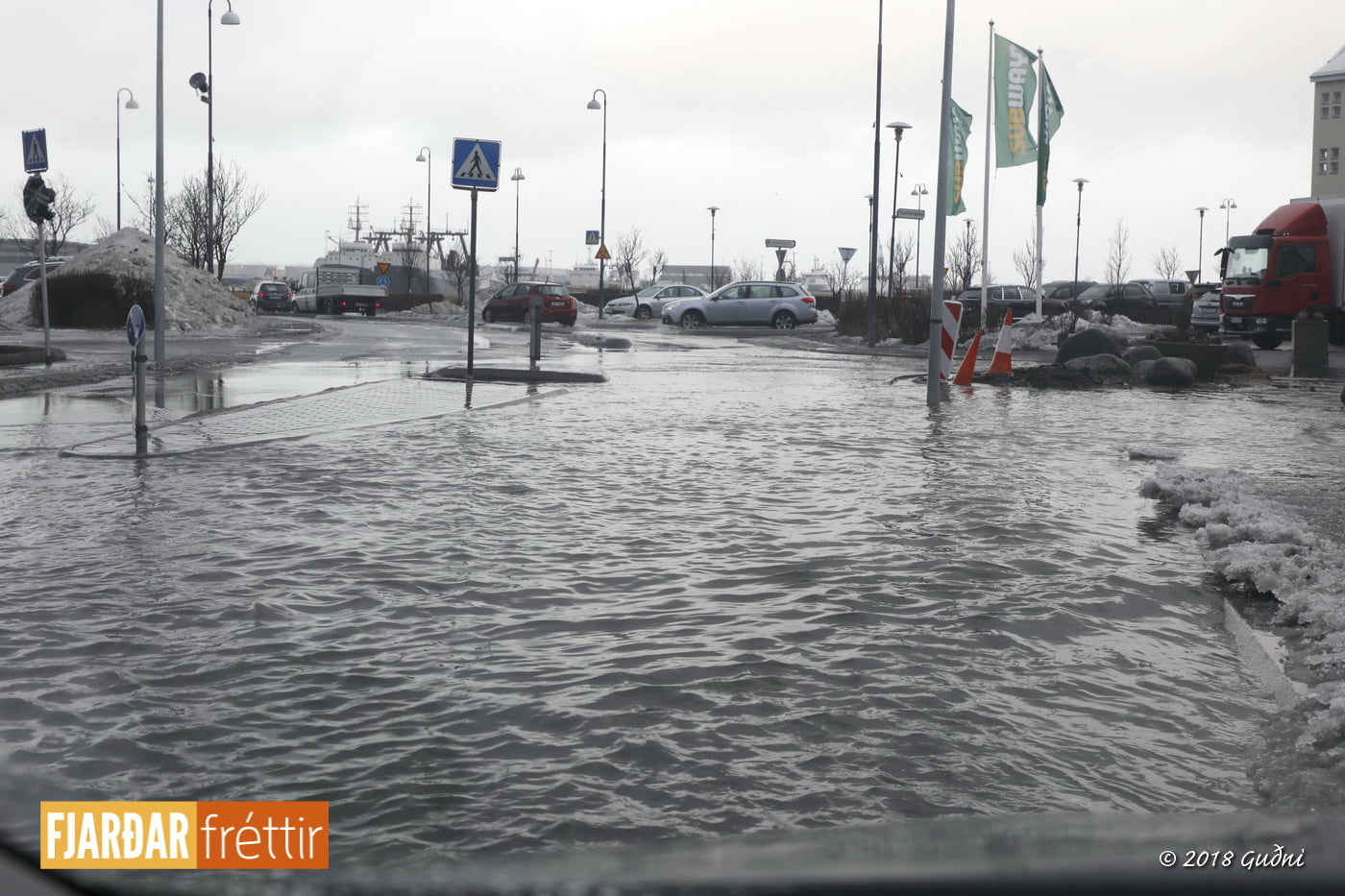 Hér má sjá nokkrar myndir úr miðbænum en mun víðar í bænum voru heilu stöðuvötnin.