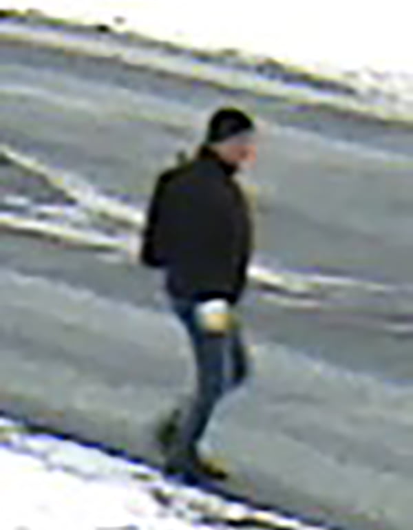 Guðmundur er um 170-175 cm á hæð og er í svörtum Cintamani jakka, bláum gallabuxum, svörtum skóm, svarta húfu, gráa/ljósa vinnuhanska og með bakpoka.