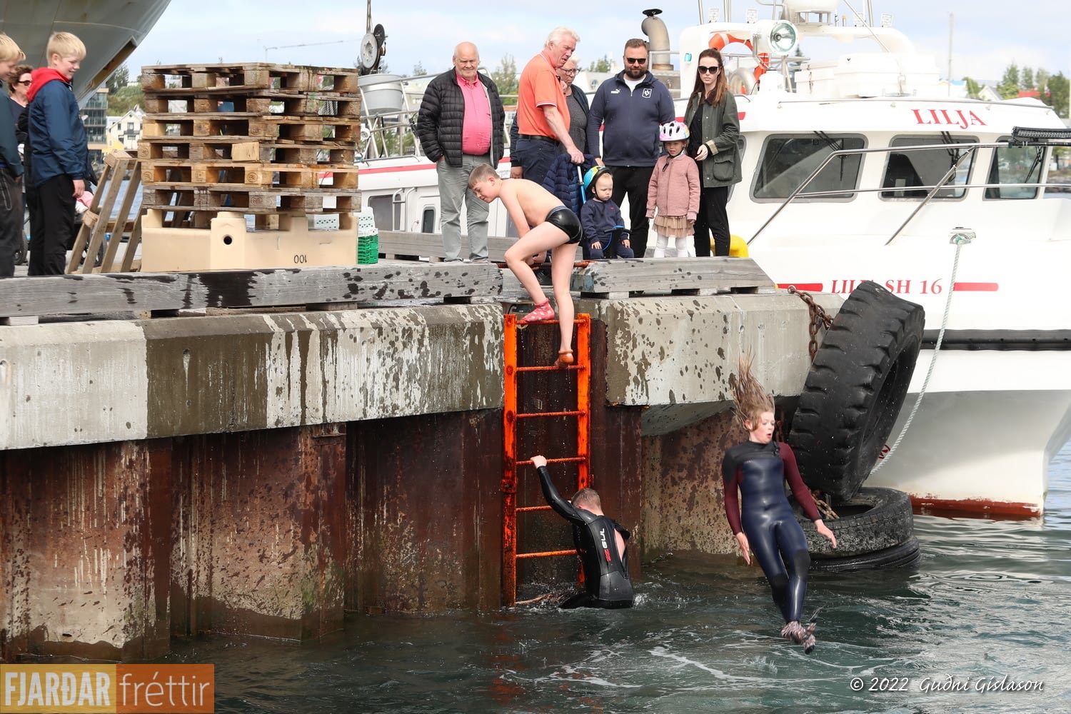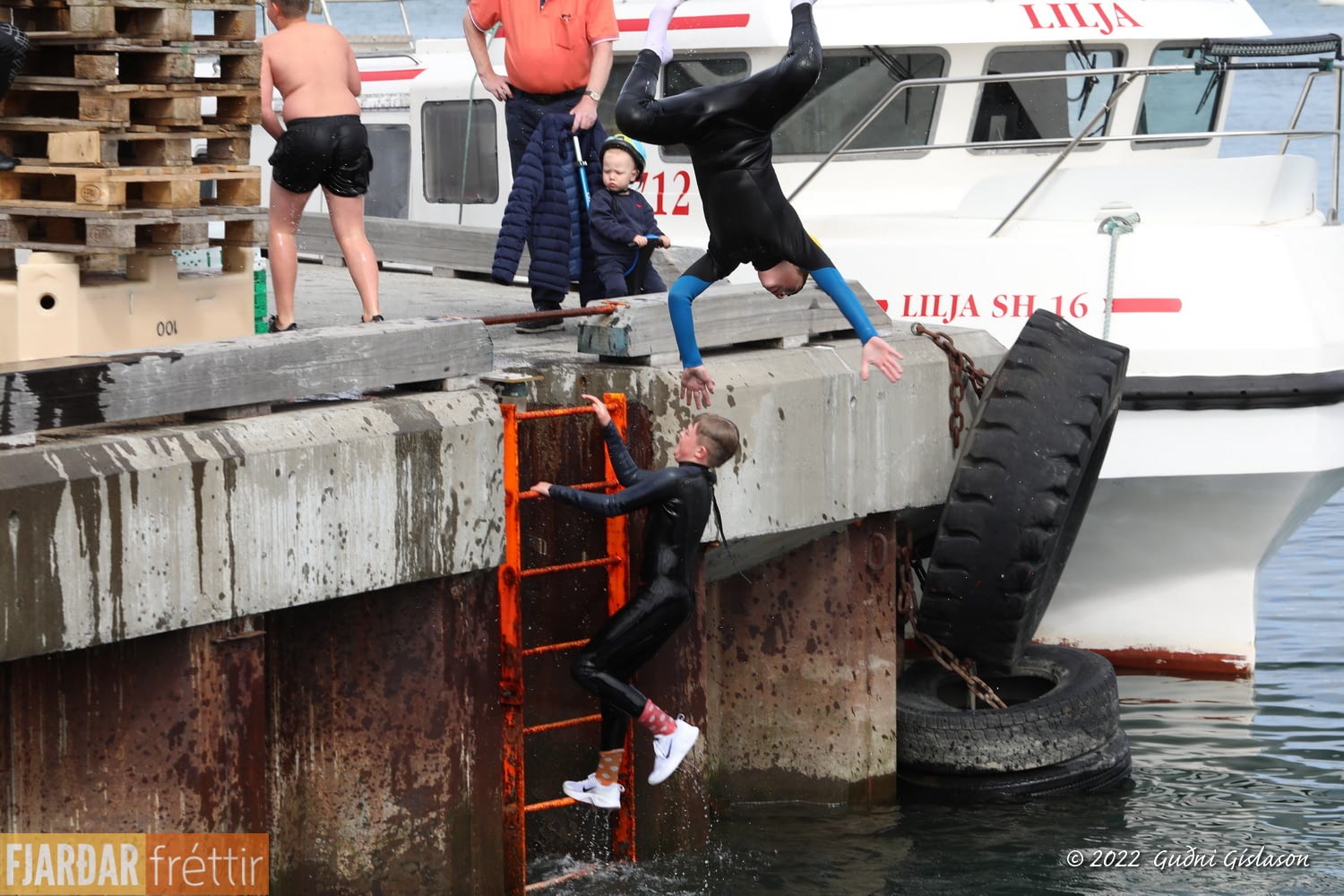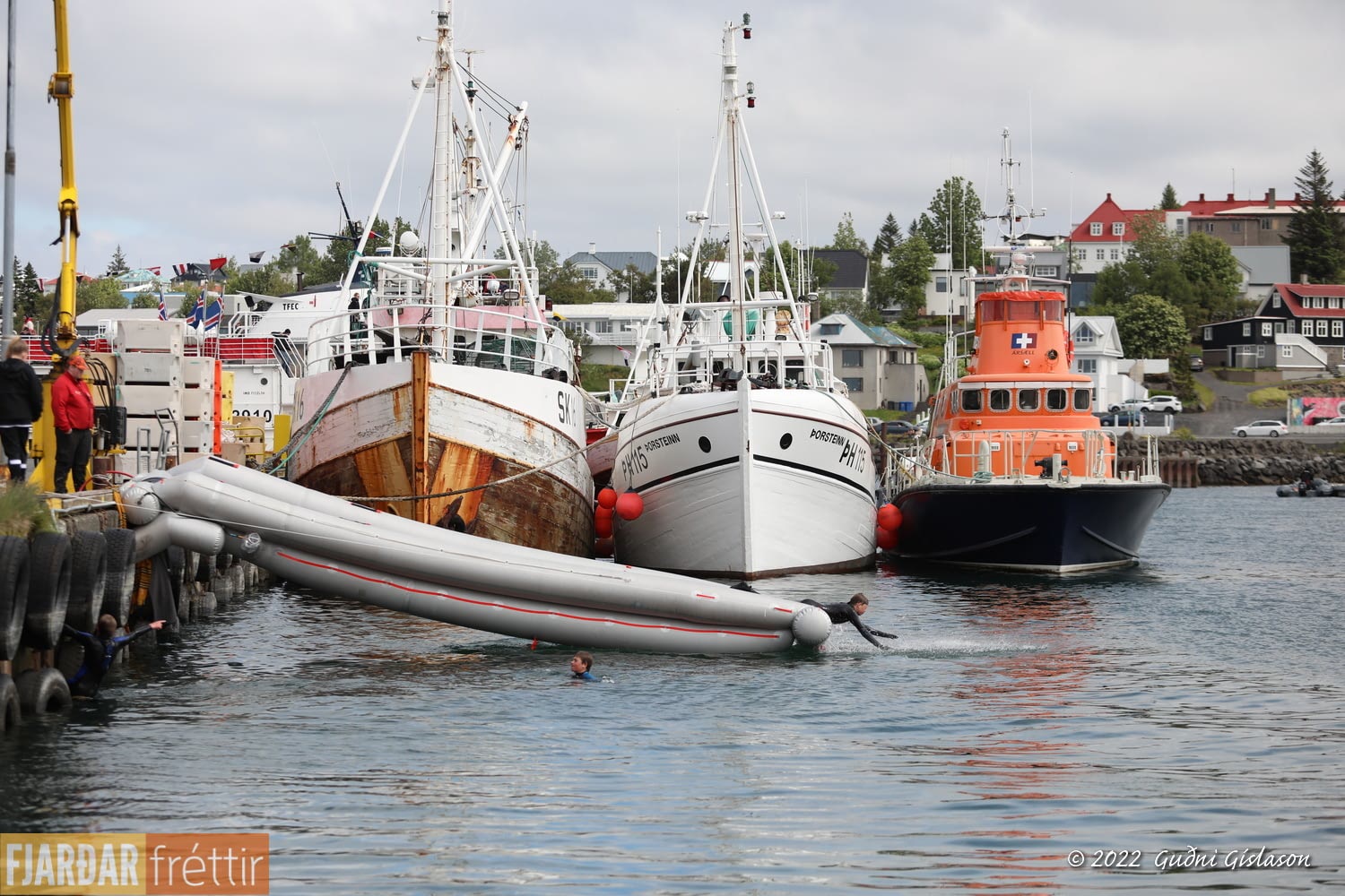 Annars var fjölmargt í boði og börn sem léku sér að því að stökkva í sjóinn vöktu mikla athygli og yngstu börnin fengu að renna sér í björgunarstól. Fólk fylgdist með keppninni Sterkasti maður Íslands og Siglingaklúbburinn Þytur var með kynningu á sínu starfi of fjölmargir prófuðu að sigla á kajak.