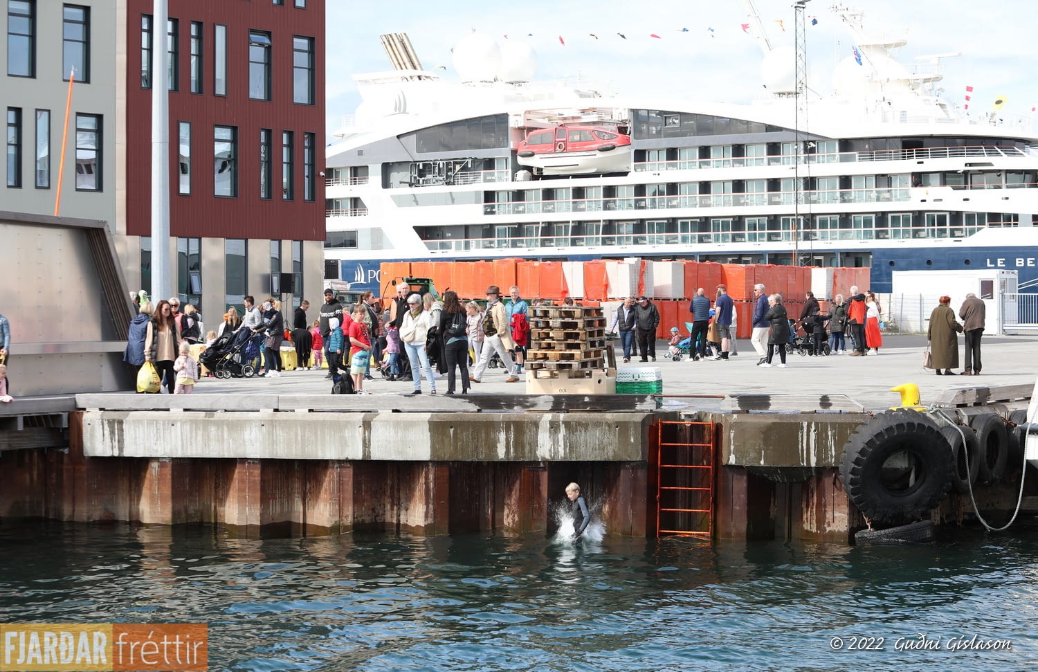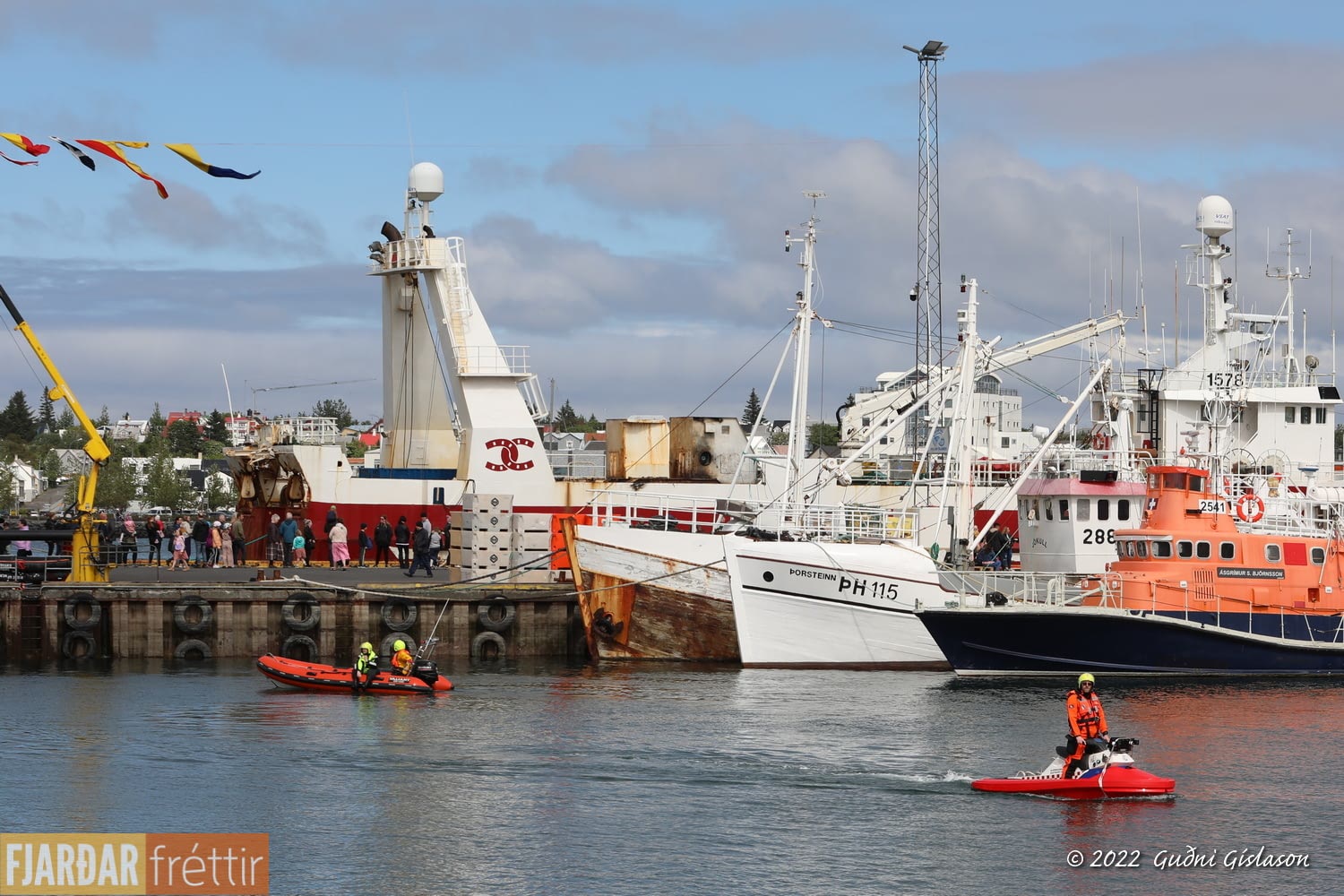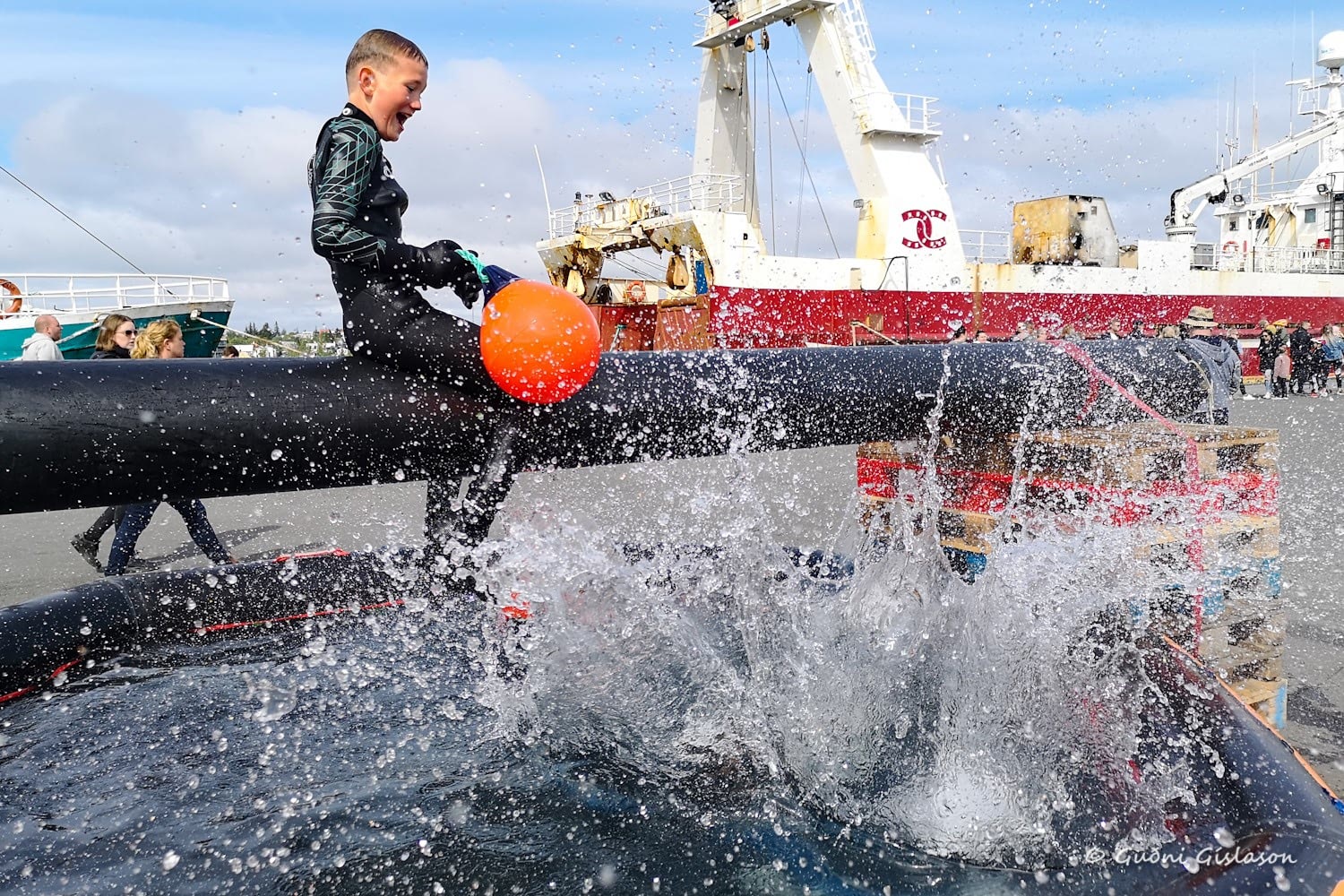 Annars var fjölmargt í boði og börn sem léku sér að því að stökkva í sjóinn vöktu mikla athygli og yngstu börnin fengu að renna sér í björgunarstól. Fólk fylgdist með keppninni Sterkasti maður Íslands og Siglingaklúbburinn Þytur var með kynningu á sínu starfi of fjölmargir prófuðu að sigla á kajak.
