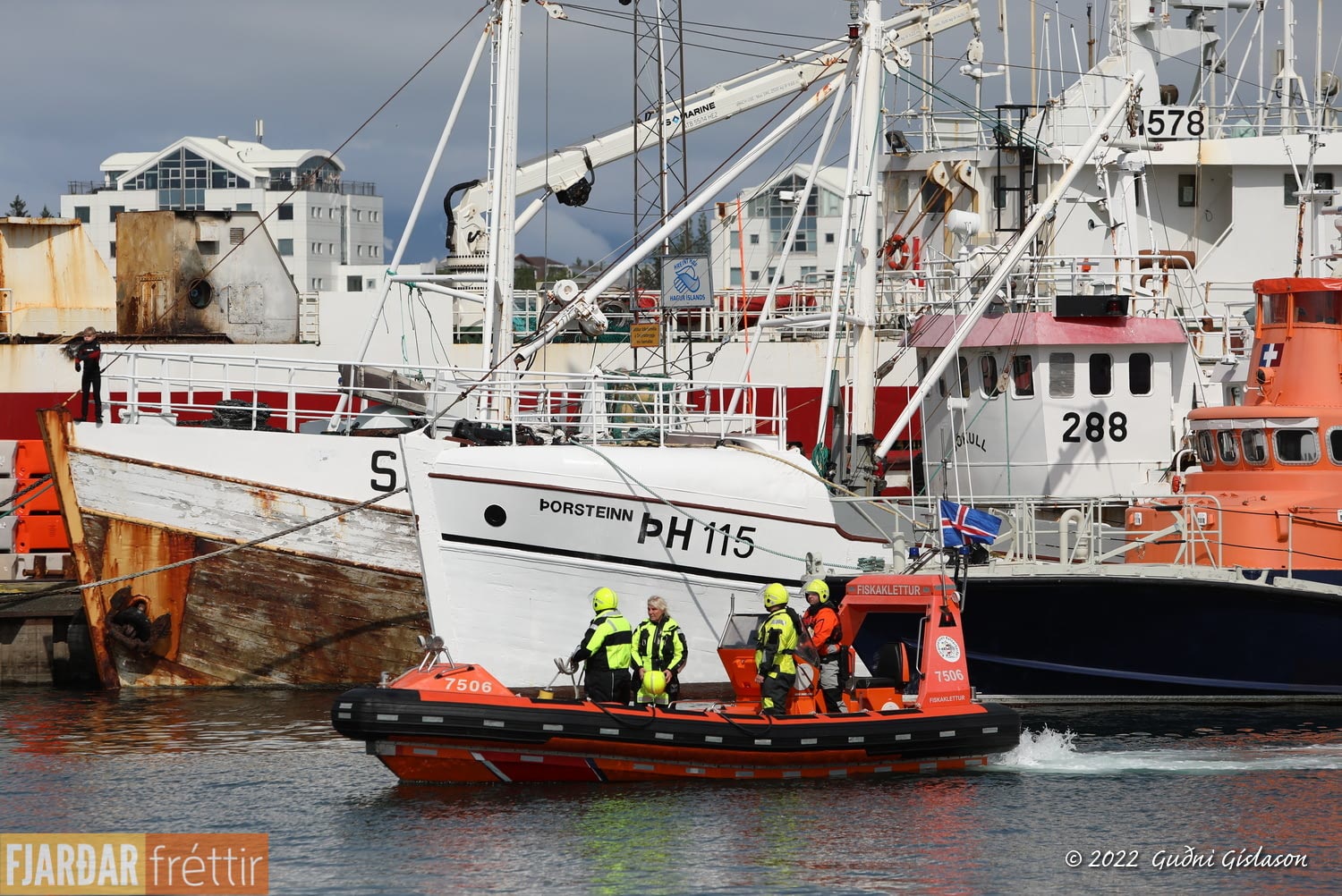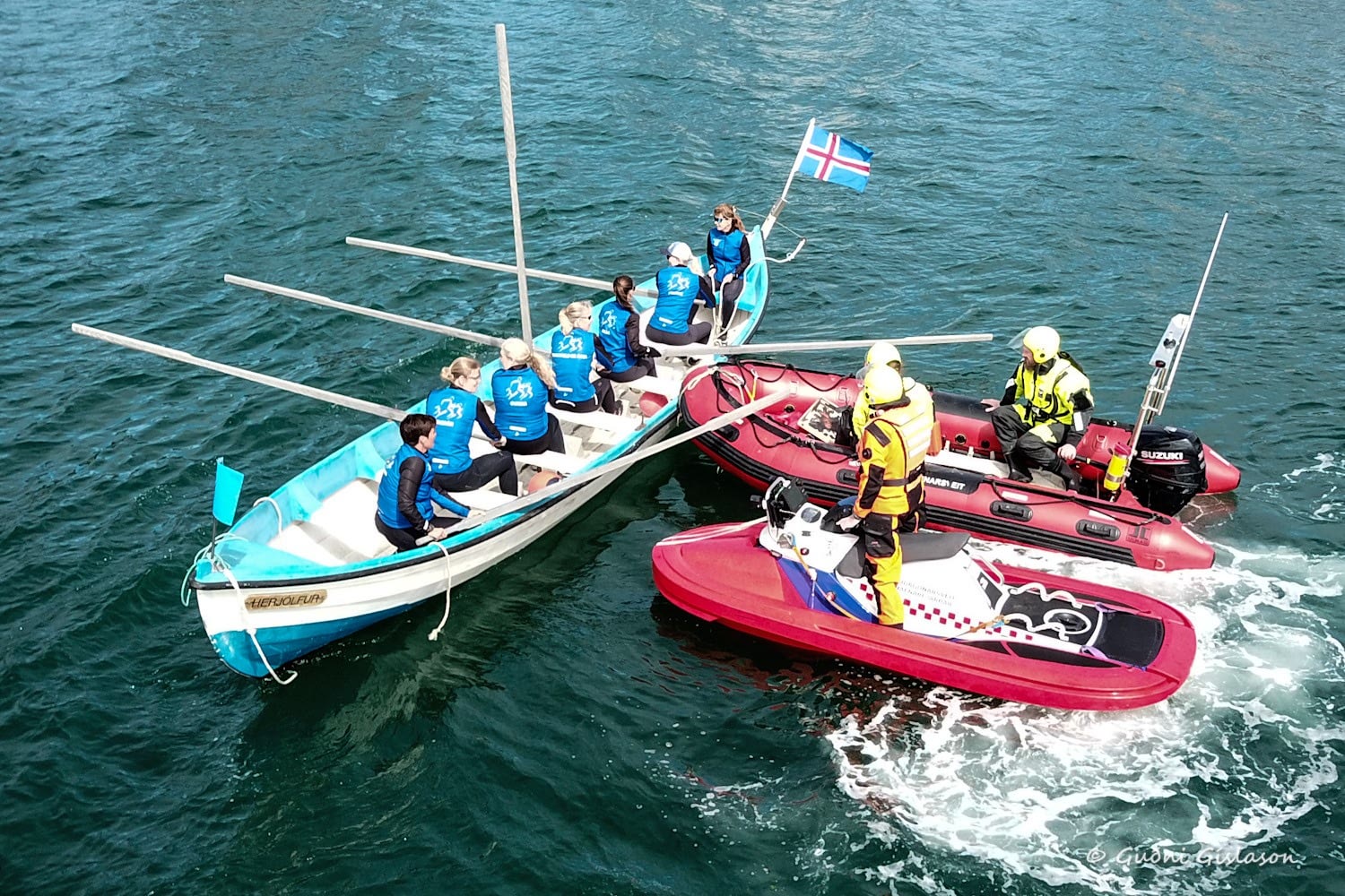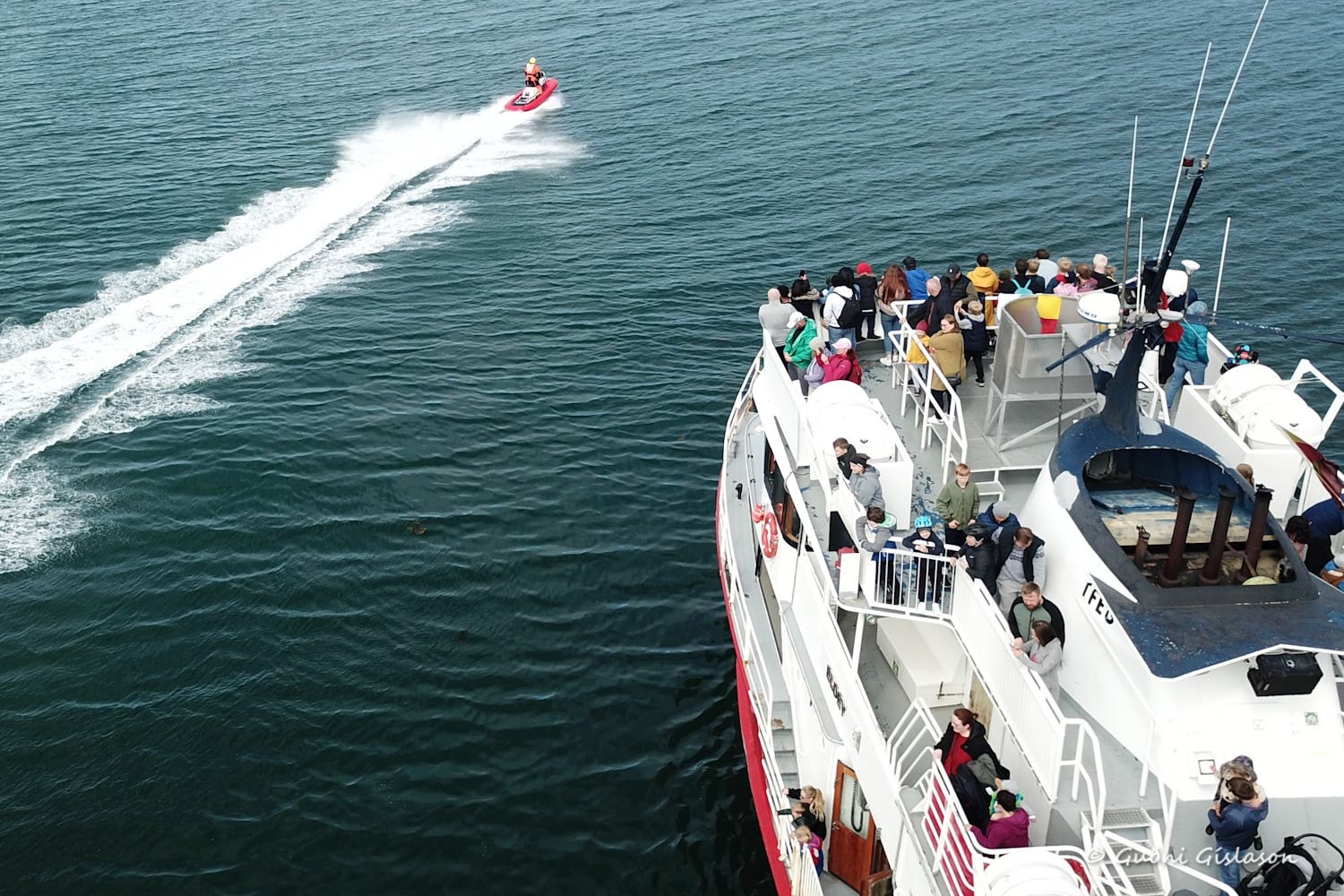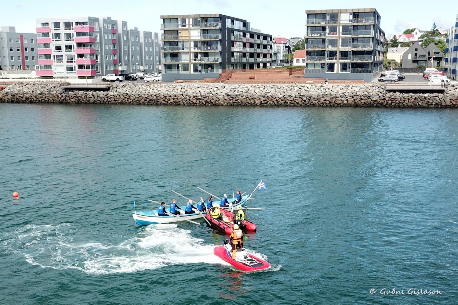 Þyrla Landhelgisgæslunnar, TF-EIR vakti mikla athygli er áhöfn hennar „bjargaði“ tveimur björgunarsveitarmönnum úr sjónum. Greinilega þaulvanir menn að verki þar.