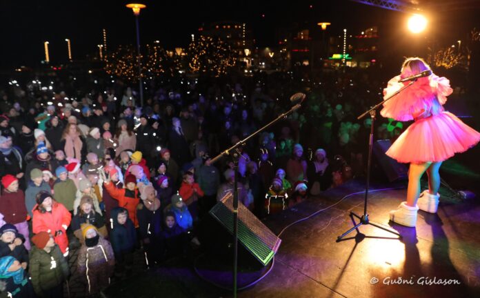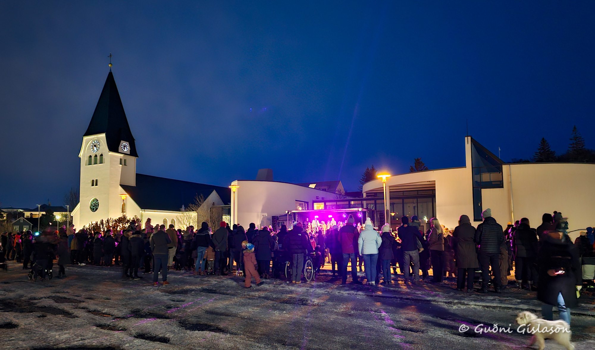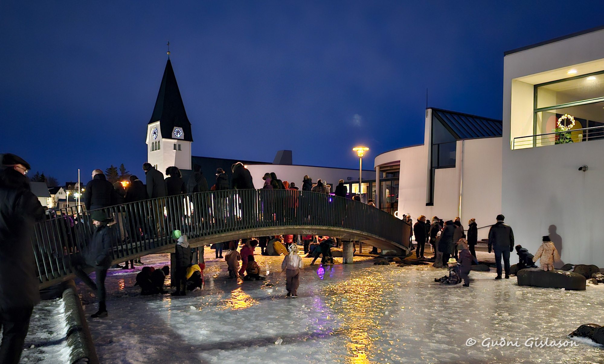 Fjölmennt þegar jólin voru kvödd með söngatriðum og flugeldasýningu – MYNDASYRPA