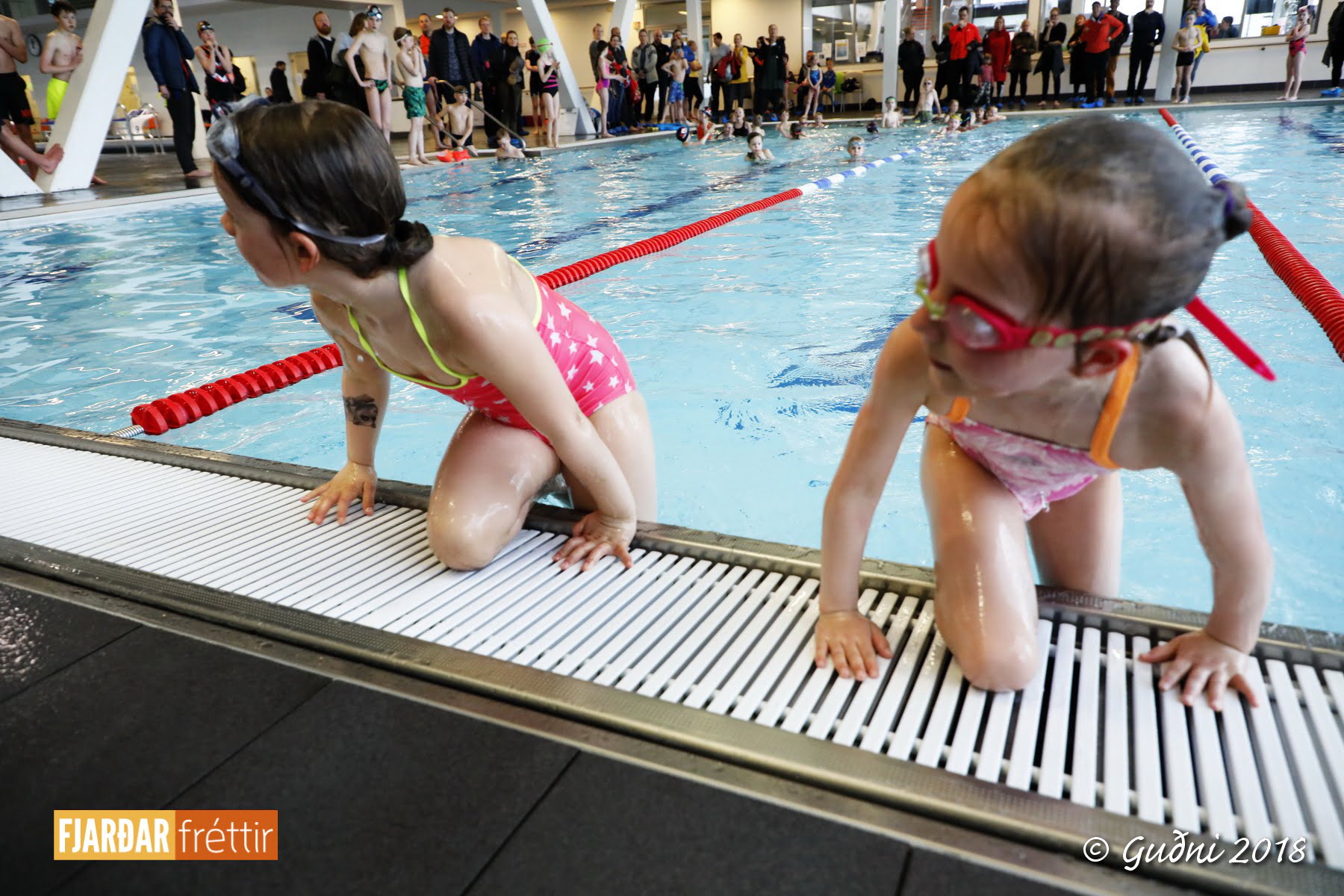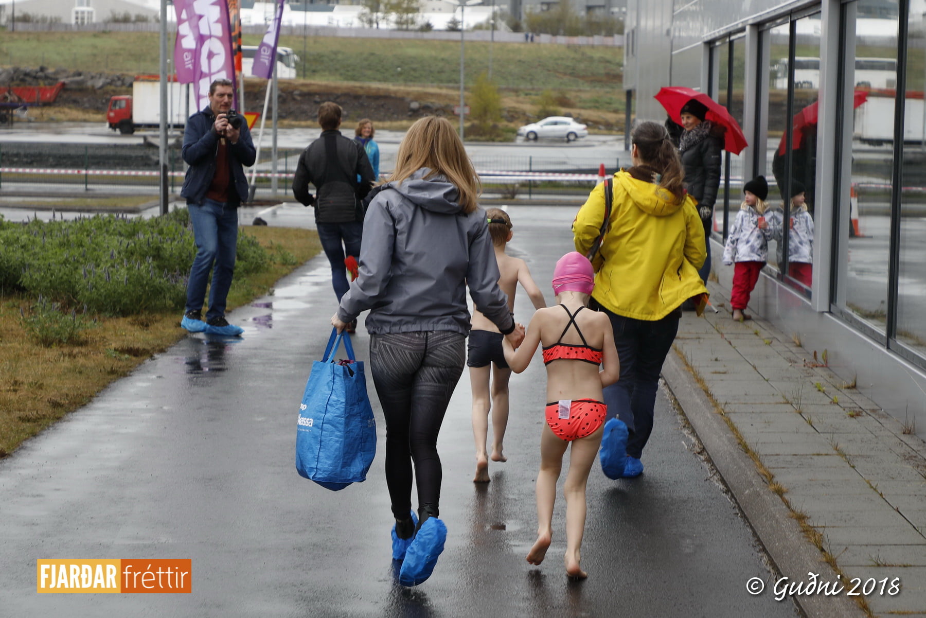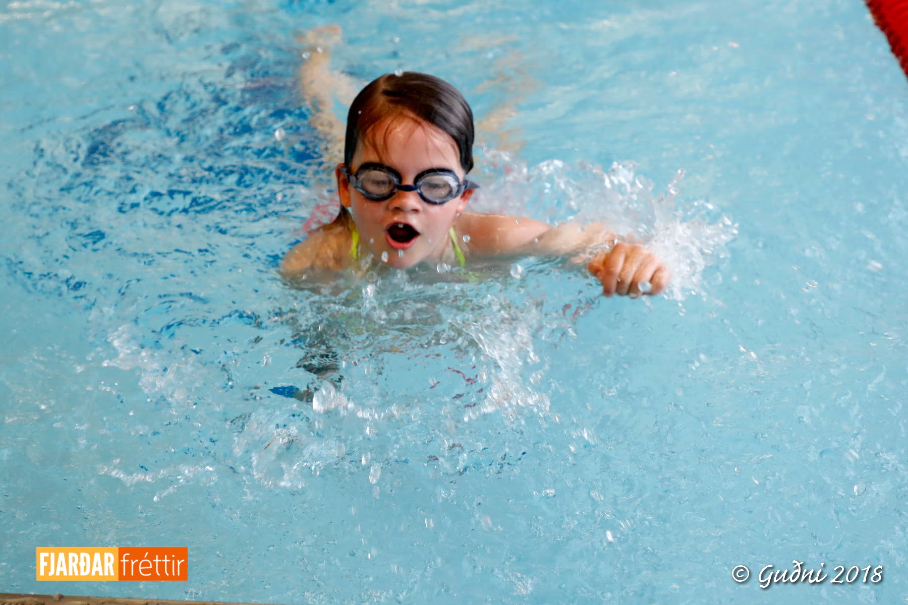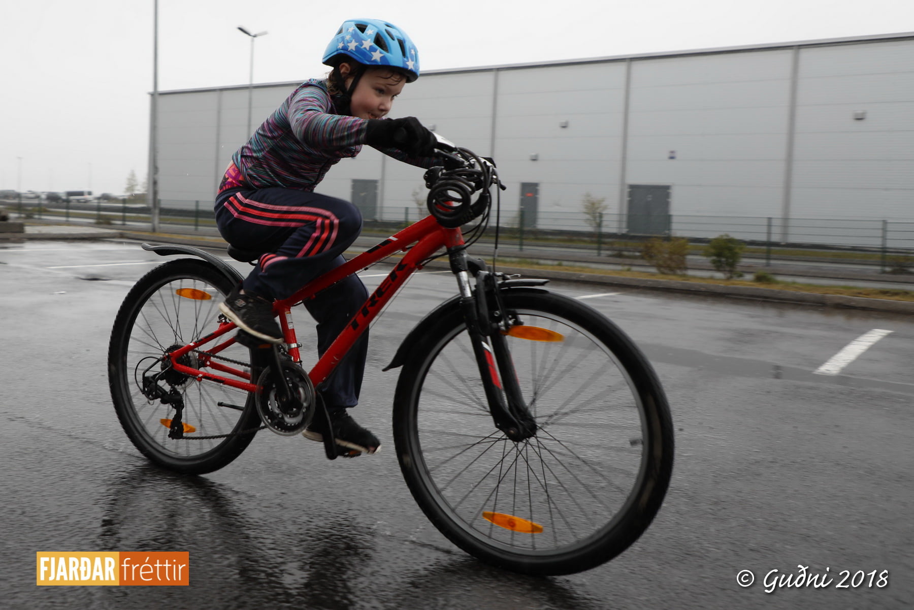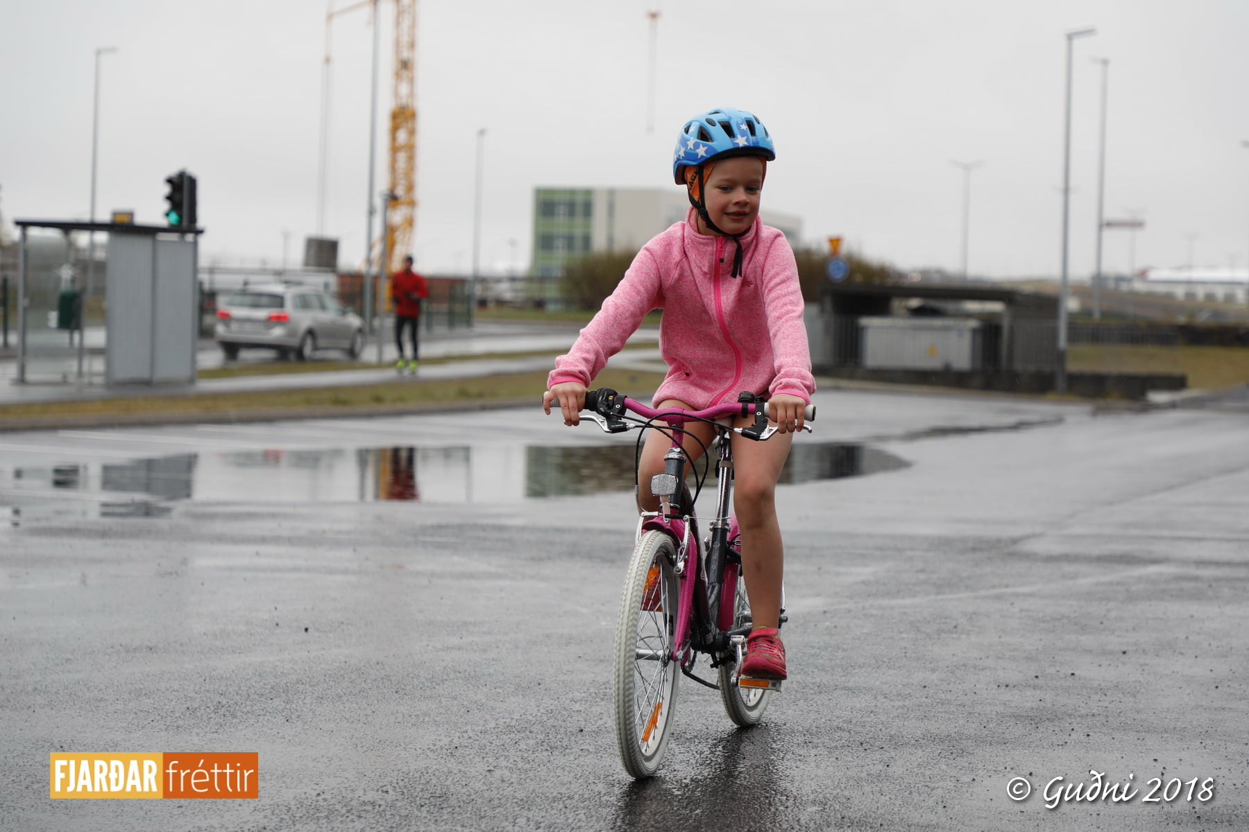 Keppni hófst með sundi en þaðan hröðuðu krakkarnir sér út, settu á sig hjálm og hjóluðu í kringum sundlaugarbygginguna. Lokagreinin var svo hlaup og keppendur voru ekki alltaf að gefa sér tíma til að skipta um föt og sundfötin stundum látin duga. Það hellirigndi á meðan á keppninni stóð en krakkarnir létu það ekkert á sig fá.