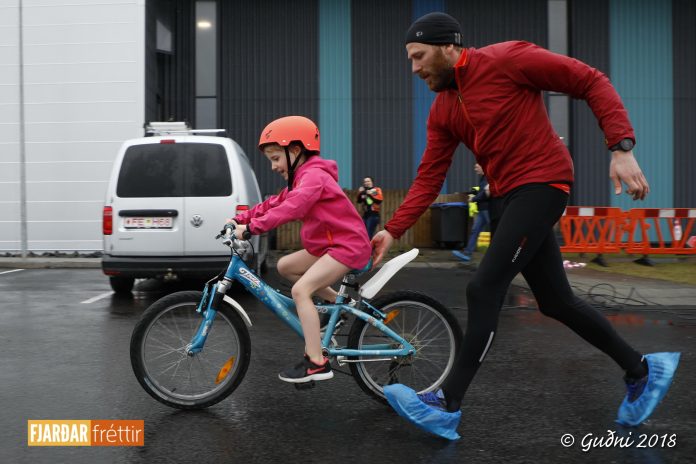 50 m sund, 2 km hjól og 900 m hlaup