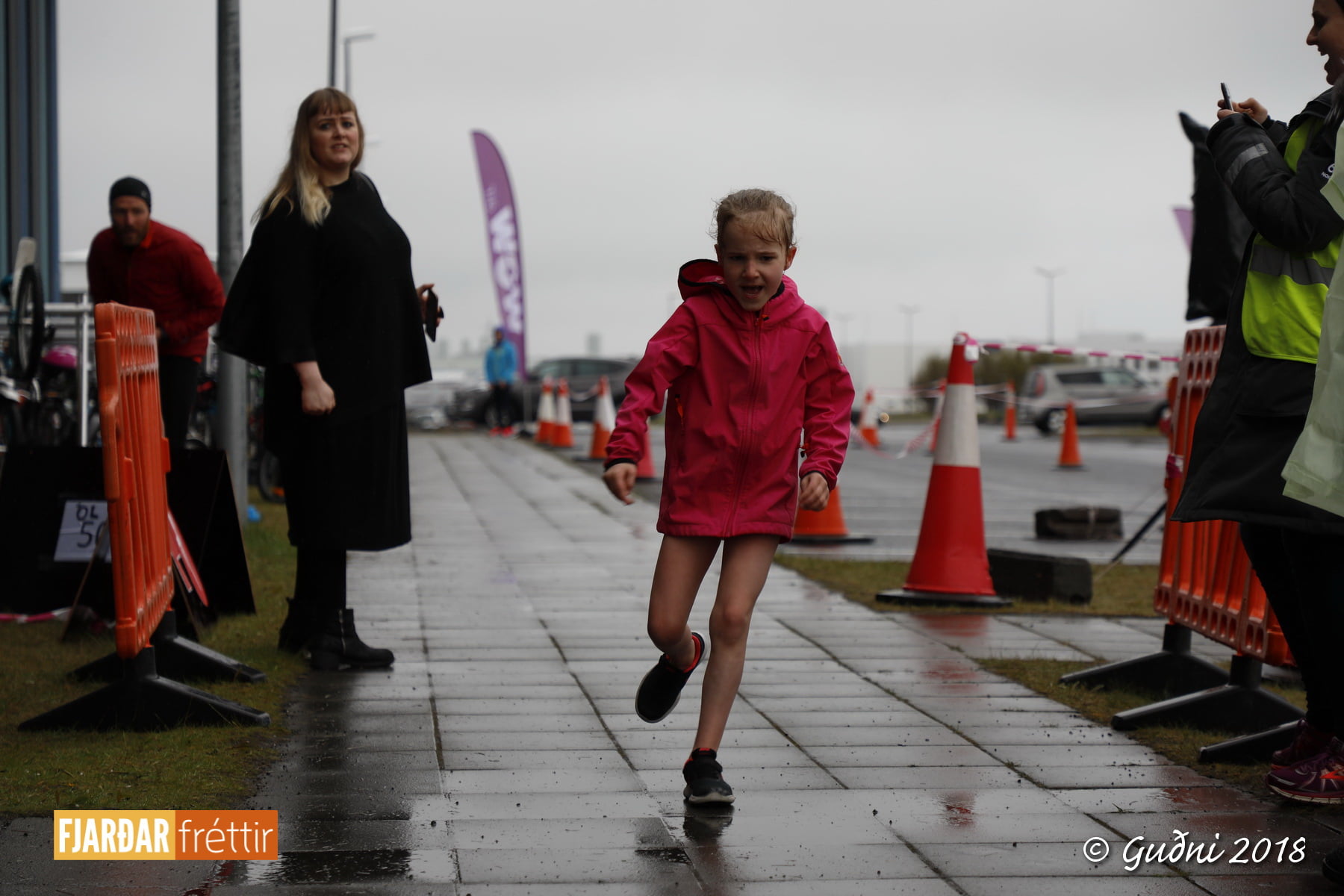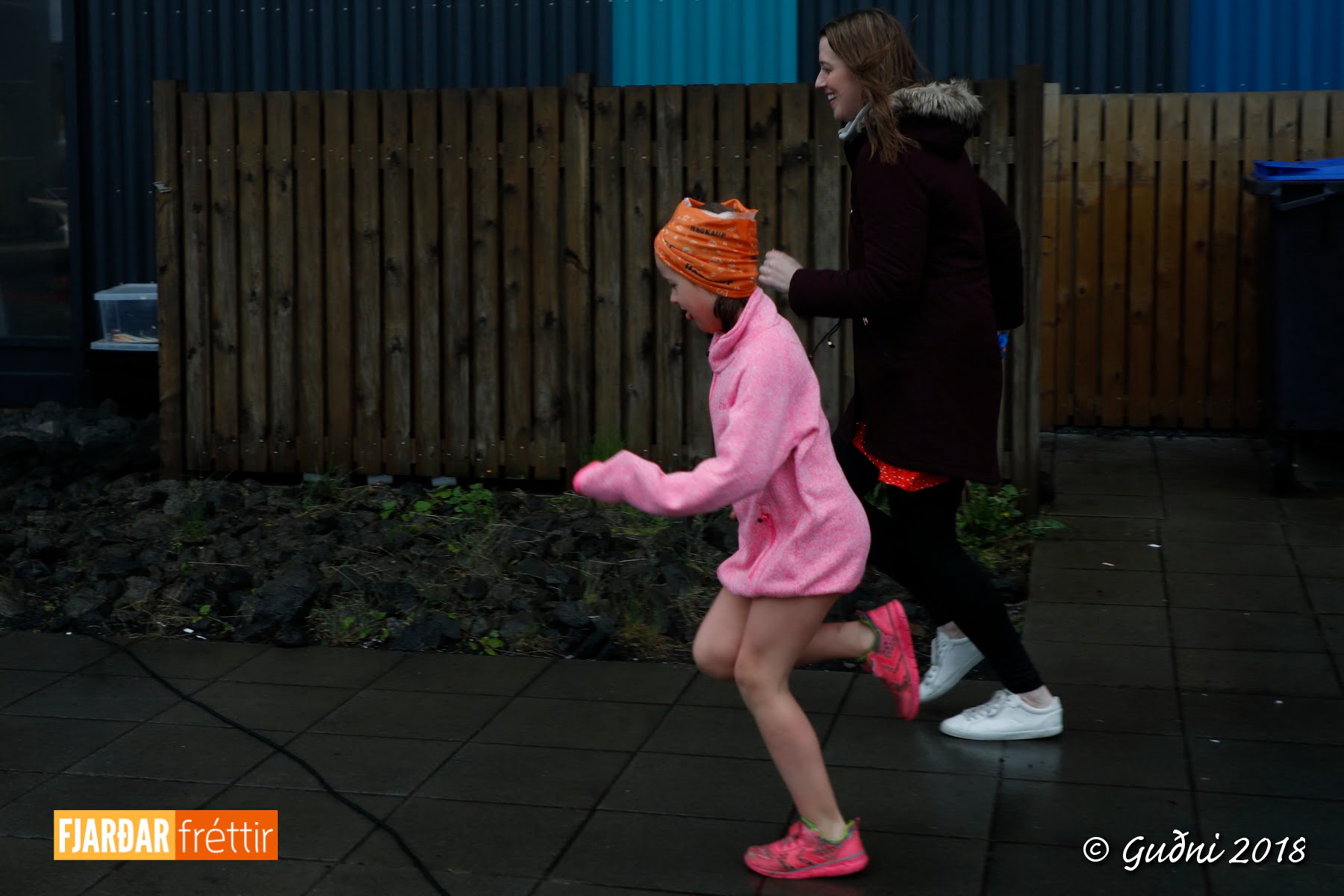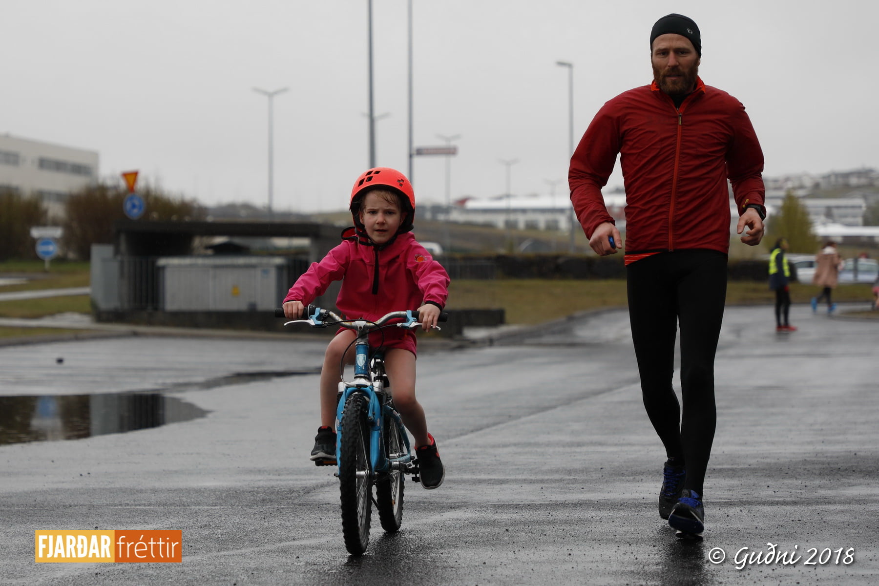 Foreldrar yngri barnanna voru ekki síður áhugasamir og hlupu með börnunum og hvöttu þau áfram.
