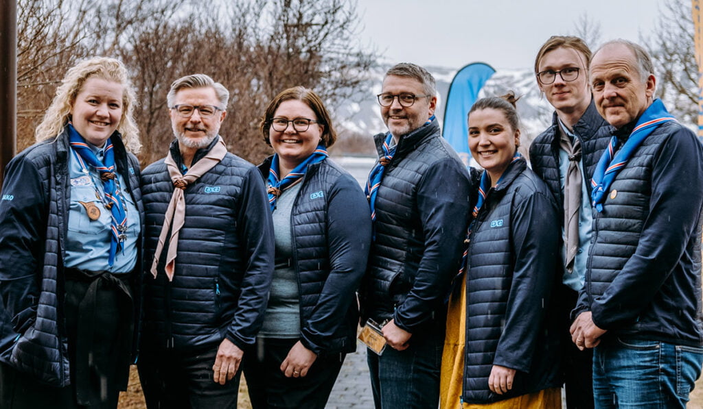 Nýkjörin stjórn Bandalags íslenskra skáta: Harpa Ósk Valgeirsdóttir, Jón Halldór Jónasson, Guðrún Stefánsdóttir, Þórhallur Helgason, Unnur Líf Kvaran, Huldar Hlynsson, og Sævar Skaptason.