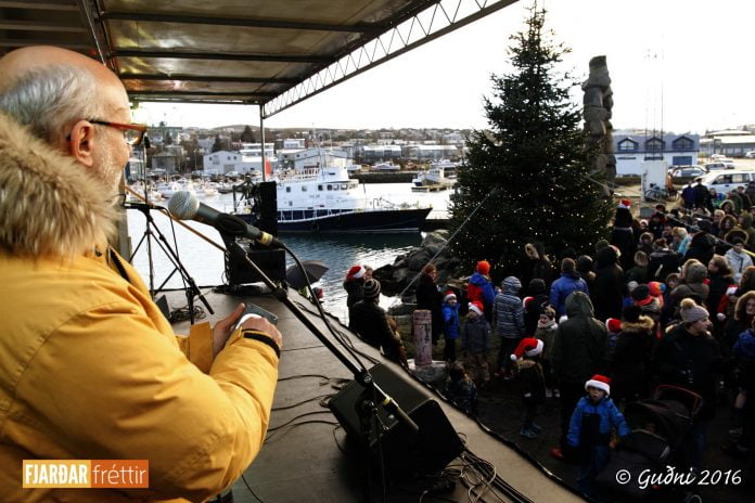 Gísli Ó. Valdimarsson formaður formaður Vinabæjarfélagsins Hafnarfjörður Cuxhaven bauð gesti velkomna og Jurgen Donner, formaður vinabæjarfélagsins í Cuxhaven flutti ávarp sem og Pétur Óskarsson varaformaður hafnarstjórnar og Diane Röhring staðgengill sendiherra Þýskalands. Leikskólabörn af leikskólanum Víðivöllum sungur og jólasveinar mættu á svæðið.