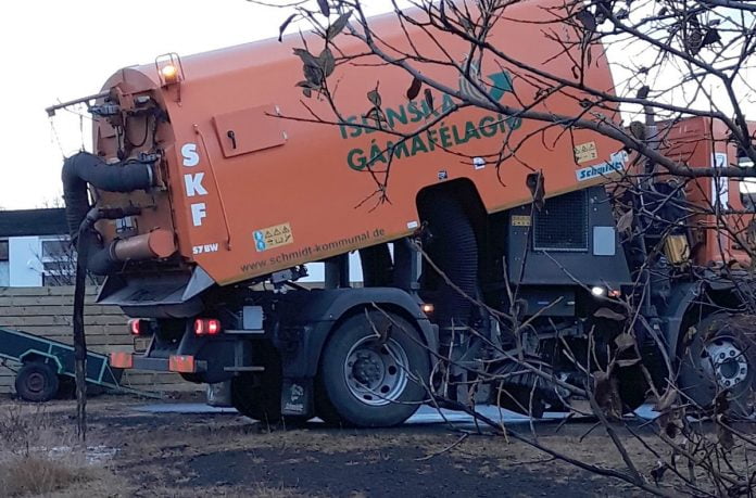 Þó ummerki séu ekki mikil á staðnum má þó sjá að þarna hefur verið dælt skítugu vatni frá götusópun en vatnið getur innihaldið hvers kyns óþverra af götunum.