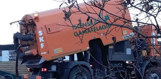 Losað úr götusópi við enda götu