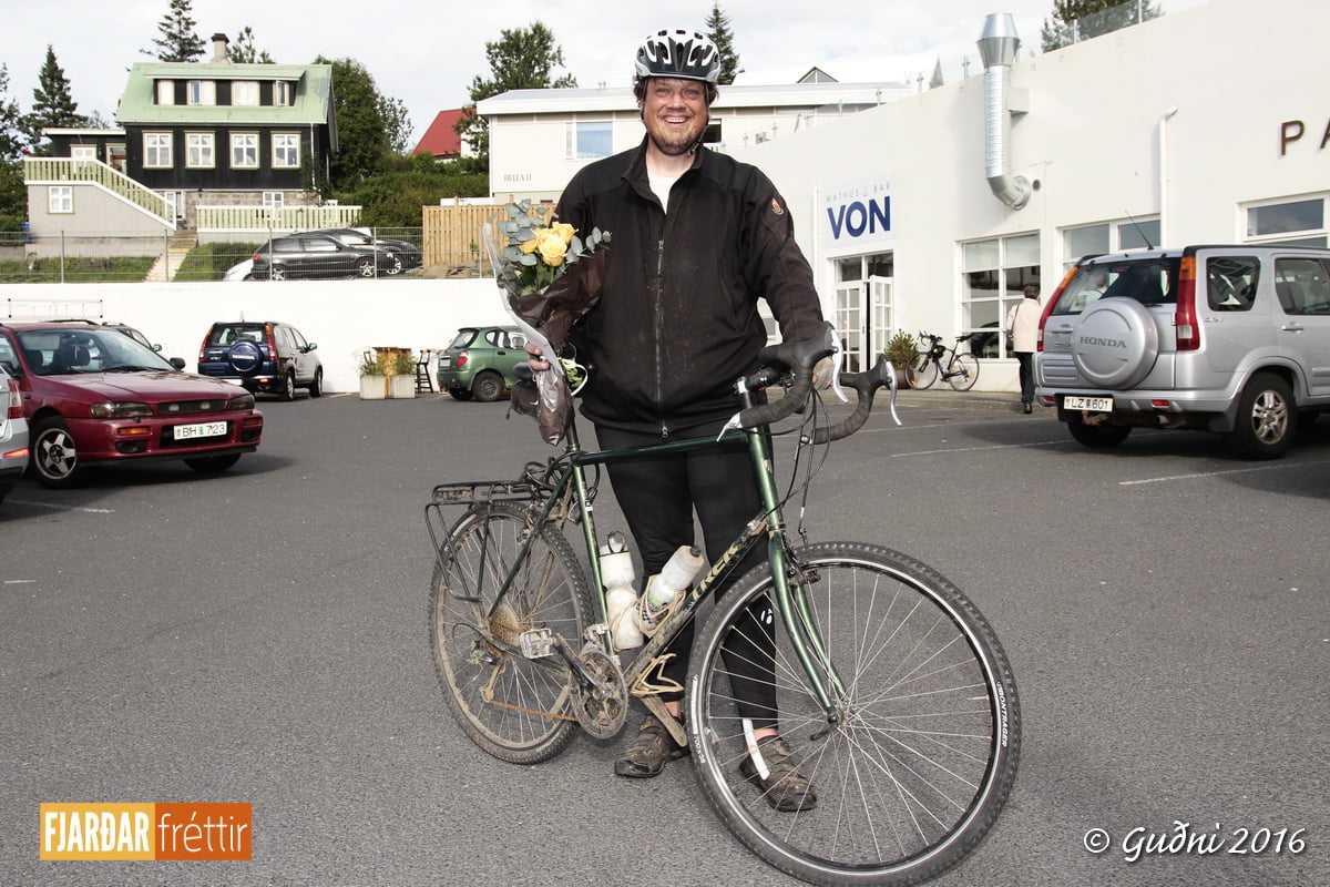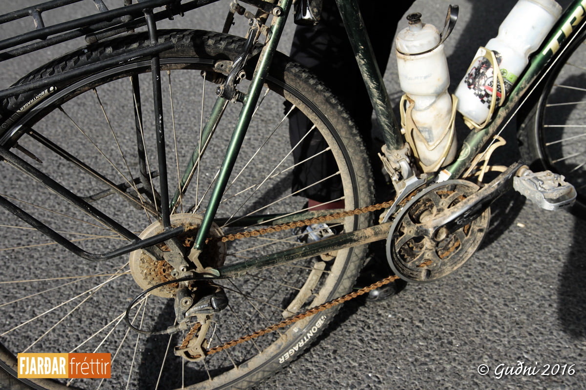 Jón Eggert fékk fylgd af vinkonu sinni, Svövu Dögg, allt til Akureyrar og þá gat hann skipt um hjól eftir þörfum. Eftir það var hann á sama hjólinu og hjólaði um 120 km á dag, allt upp í 150 km. Segir hann að hjólið hafi virkað vel og engar bilanir komið upp annað en að tvisvar sprakk hjá honum. Hlýtur það að teljast vel sloppið á 3.200 km leið.