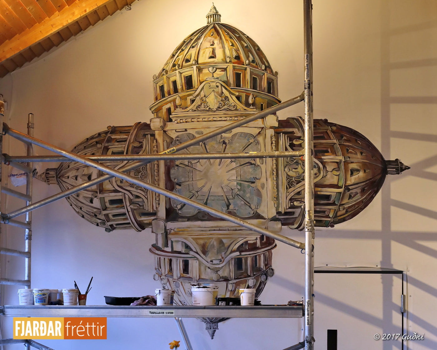 HeimFréttirGötulistamaður málar á vegg í Hafnarborg