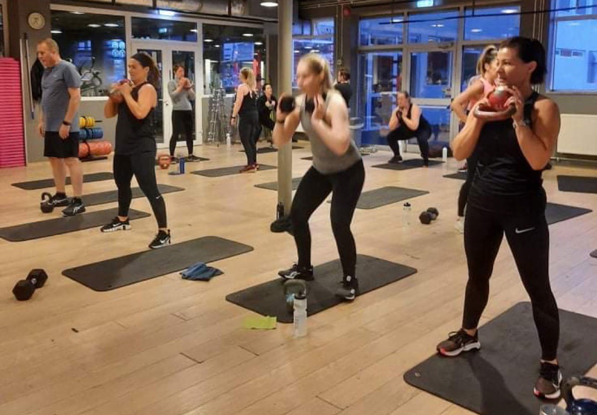 Fullt var í tímann og voru tæplega 70 manns saman komin til að svitna til góðs.