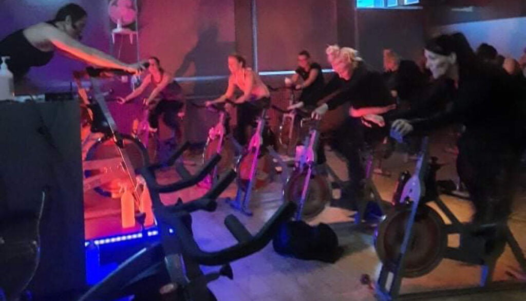 Kennt var í þremur sölum og færðust iðkendur á milli sala; spinningsalar, æfingasalar og heits salar.