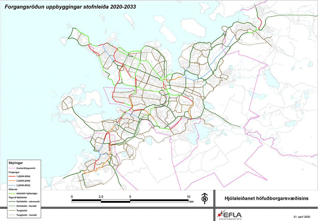 Forgangsröðun uppbyggingar stofnleiða hjólreiðastíga 2020 – 2033.