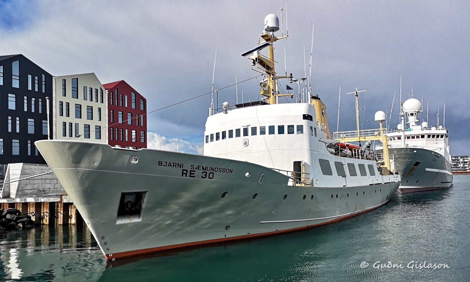 Meðfylgjandi myndir eru frá höfninni sem ljósmyndari blaðins tók auk mynda sem Hafnfirðingurinn Ríkharður Ríkharðsson tók en hann fer víða með myndavélina og árangurinn er glæsilegur. Nún beindi hann sjónum að manni á sæþotu sem lék sér í höfninni.