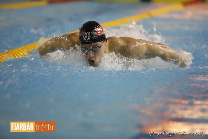 Anton Sveinn synti á 59,70 sekúndum í 100 metra bringusundi, 51/100 úr sekúndu undir HM lágmarkinu. Anton á Íslandsmetið í greininni á 58,66 sekúndum frá því í Berlín í fyrra.