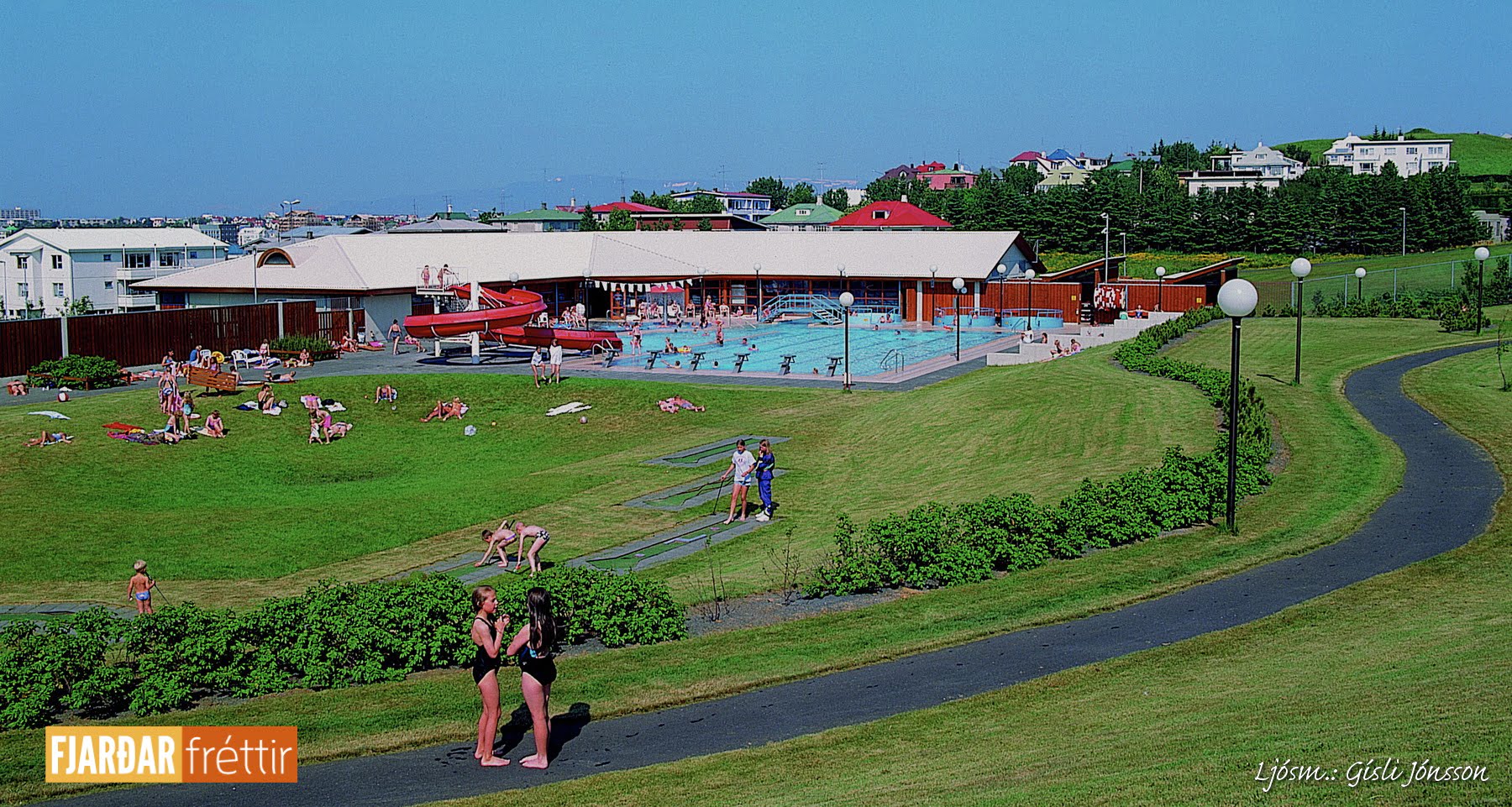 Nýlega var Suðurbæjarlaug opnuð aftur eftir viðhald og því er við hæfi að birta eina gamla mynd af lauginni sem Gísli Jónsson tók um 1990. Myndin kom út á póstkorti sem hann gaf út í samstarfi við Bókabúð Böðvars.
