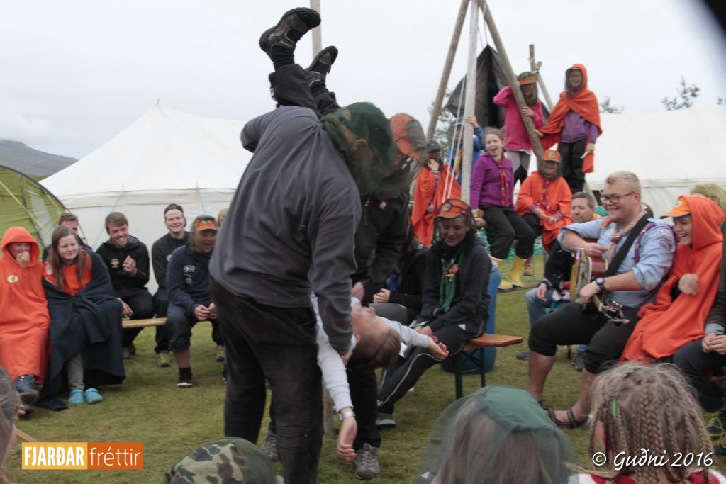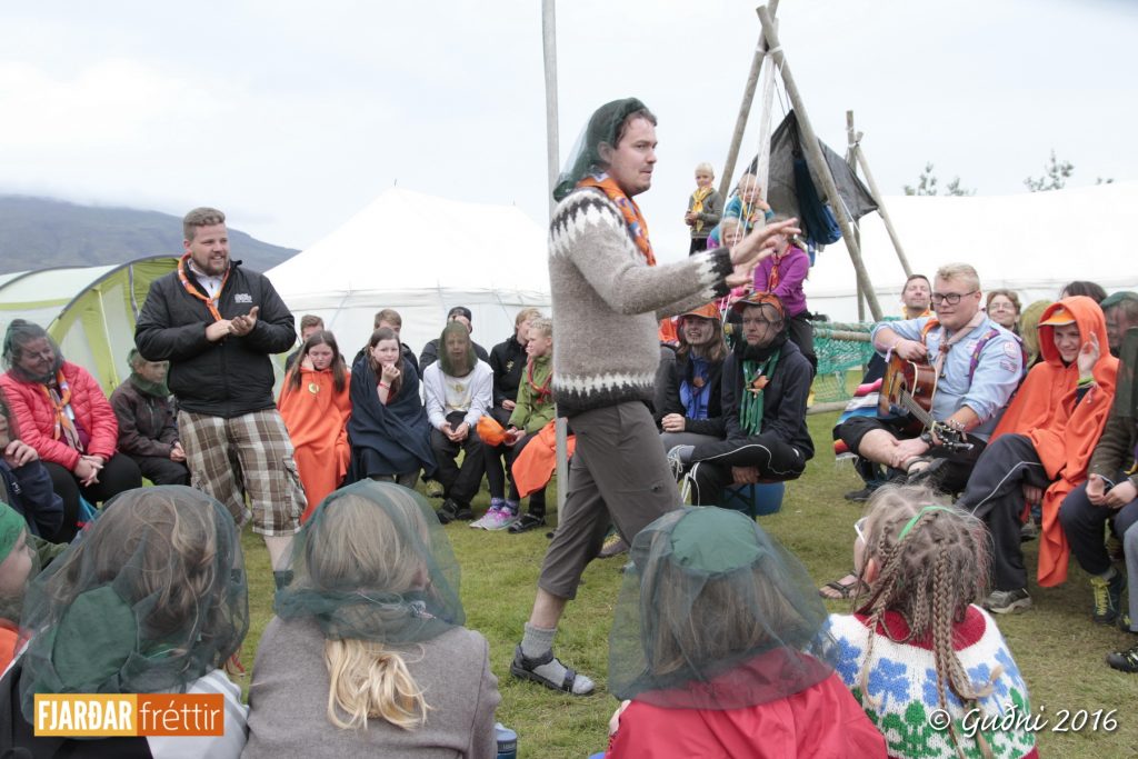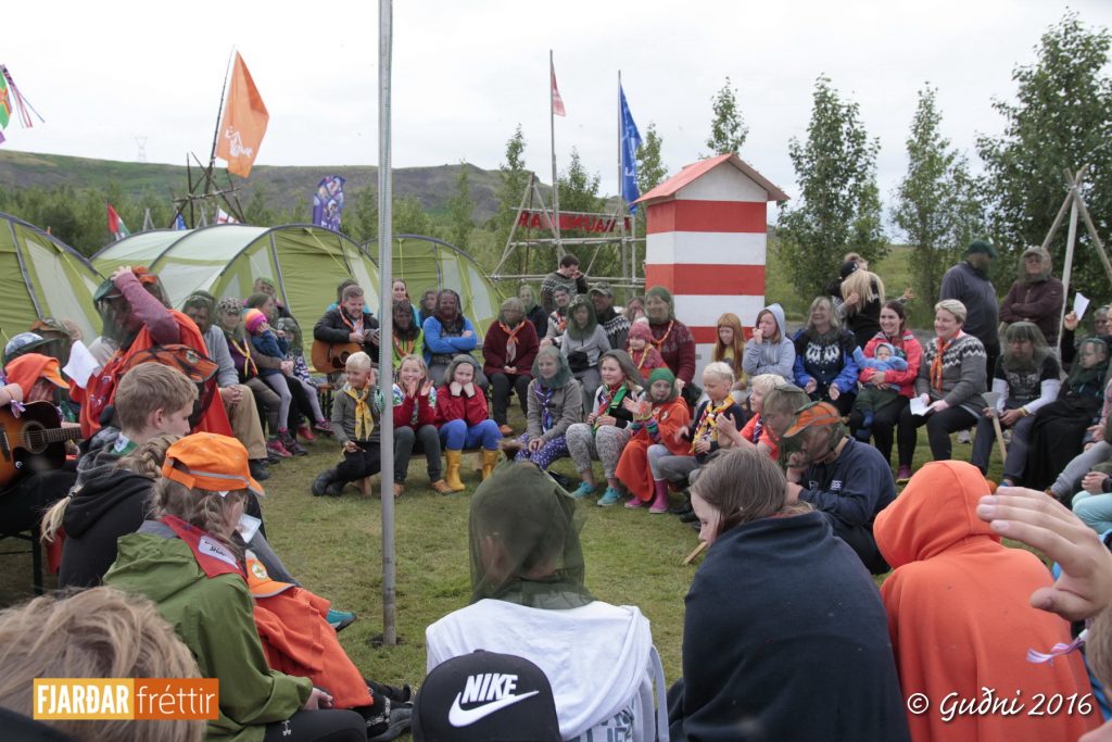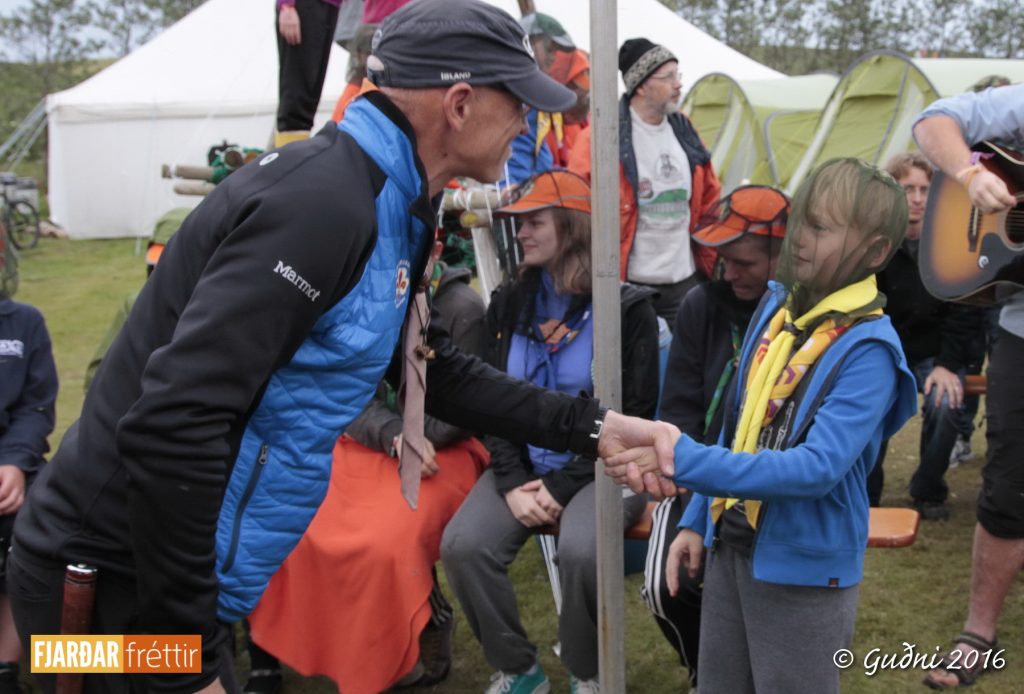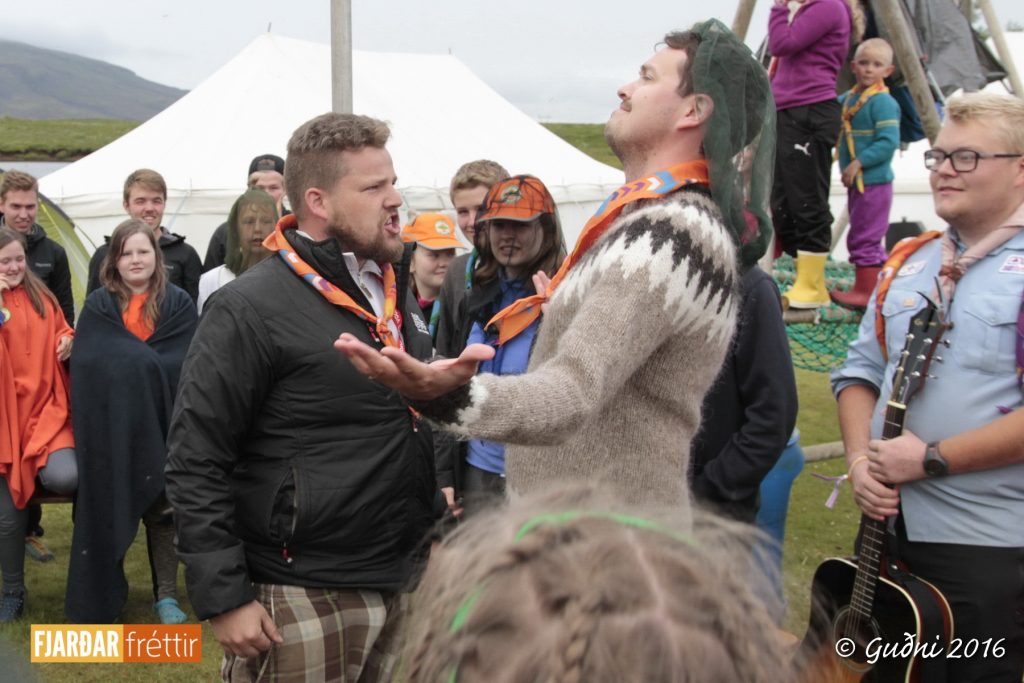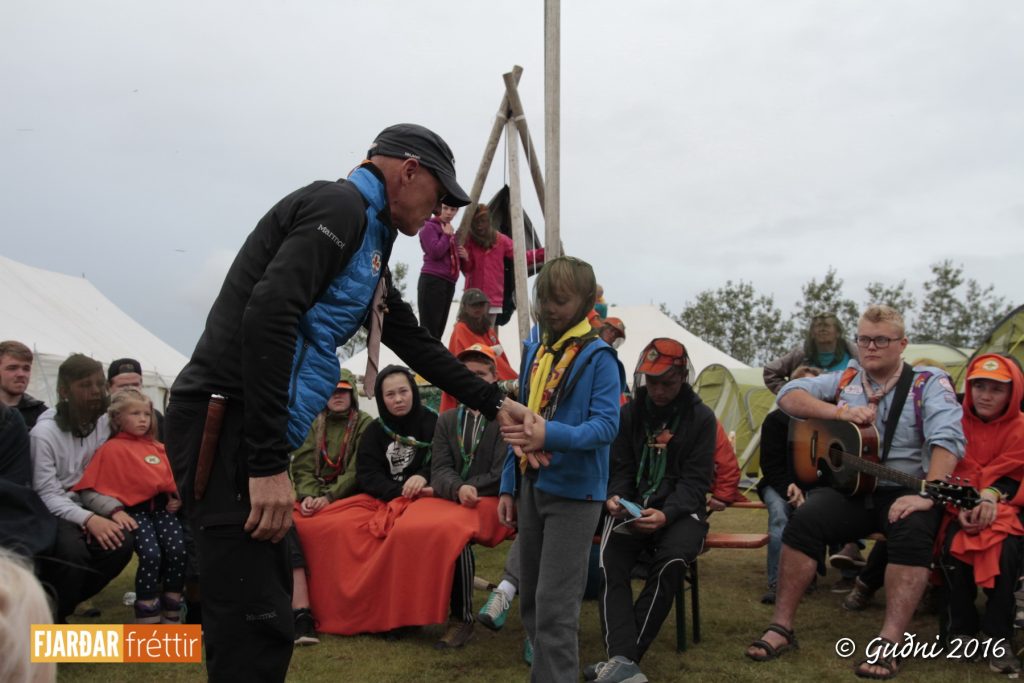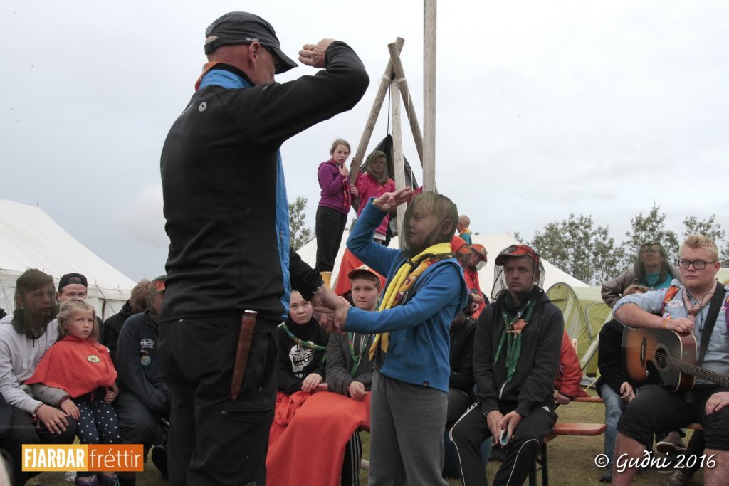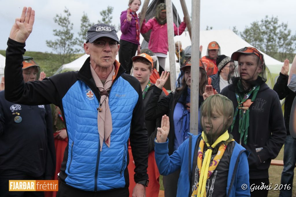 Fór hann, ásamt öllum viðstöddum, með skátaheitið til staðfestingar inngöngu hans í skátahreyfinguna.